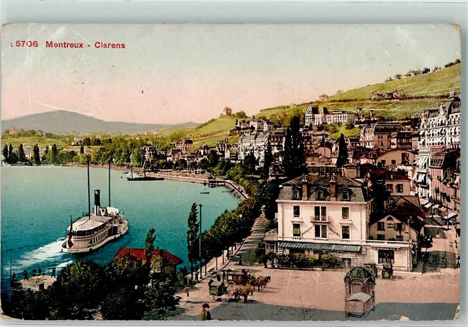 1815 Clarens Gebrauchsspuren Dampfschiff Pferdekutschen