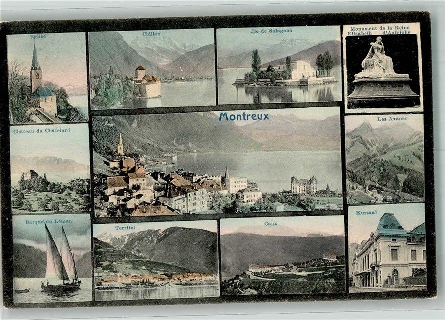 1820 Montreux Foto AK Kirche Ile de Salagnon Denkmal Elisabeth Schloss