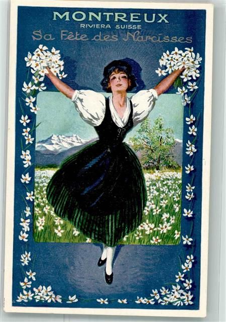 1820 Montreux Künstlerkarte Blumentage Sa Fete des Narcisses