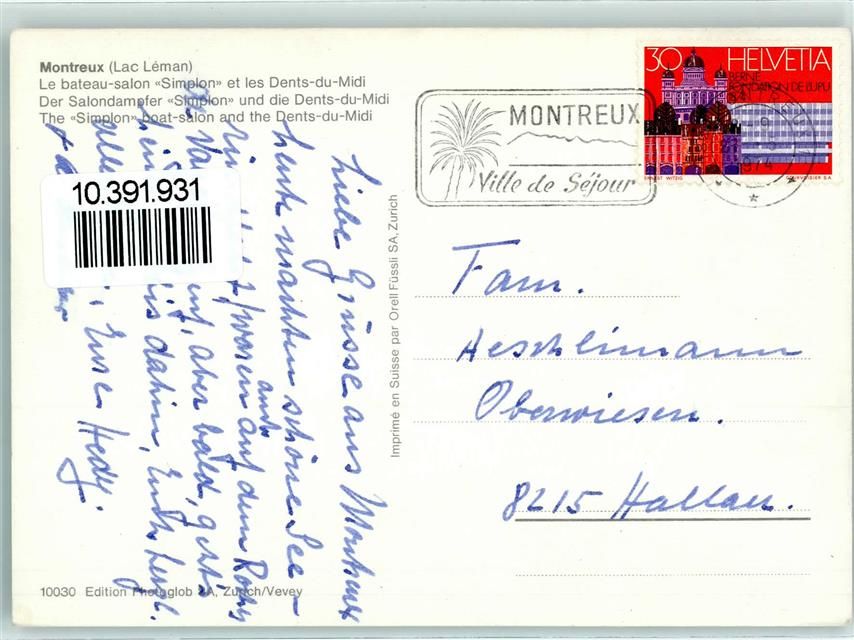 1820 Montreux - Salondampfer Simplon und die Dents du Midi Lac Leman