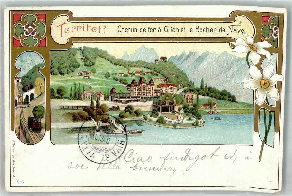 1820 Territet 1901 Lithographie Bergbahn Hotel