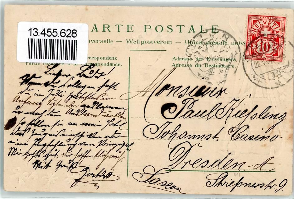 1823 Glion 1907 Prägedruck Gams Wappen Lithographie