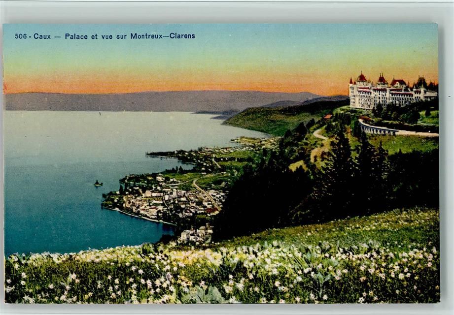 Caux, Palace et vue sur Montreux-Clarens Abendrot