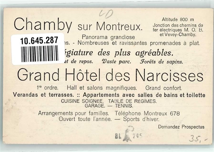 Chamby, Grand Hotel des Narcisses Dent du Midi Informationskarte