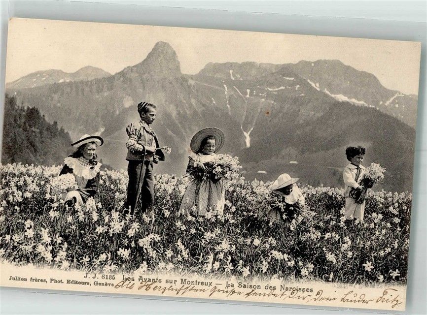 1833 Les Avants 1910 Foto AK Tracht La Saison des Narcisses