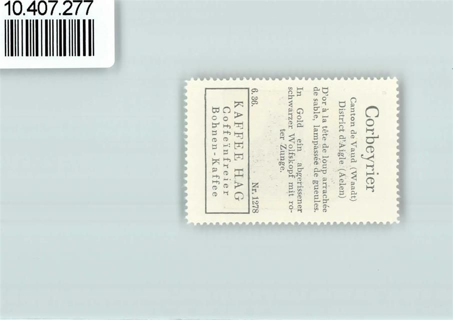 Corbeyrier, Vignette Wappen Kaffee Hag 1920-1940 Wolf