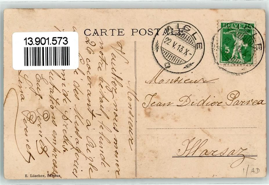 1860 Aigle 1913 - Cafe Gasthaus Co du Moele Ort lt. Stempel