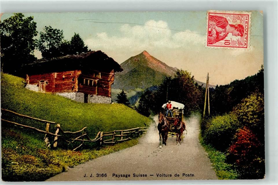 Les Diablerets, Paysage Suisse Postkutsche Ort handschriftlich