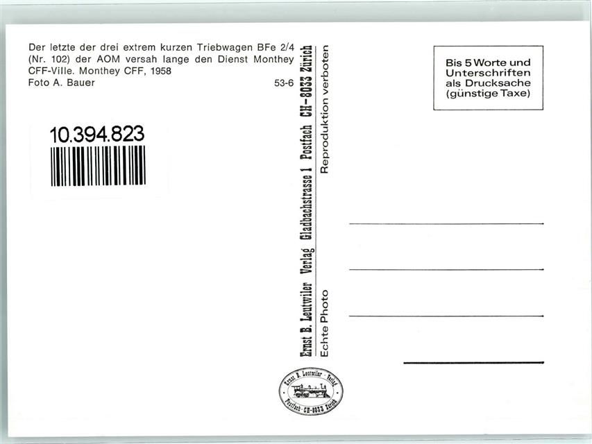 Monthey, Repro Der letzte der drei extrem kurzen Tribwagen BFe 2/4 der AOM versah lange den Dienst Monthey CFF-Ville