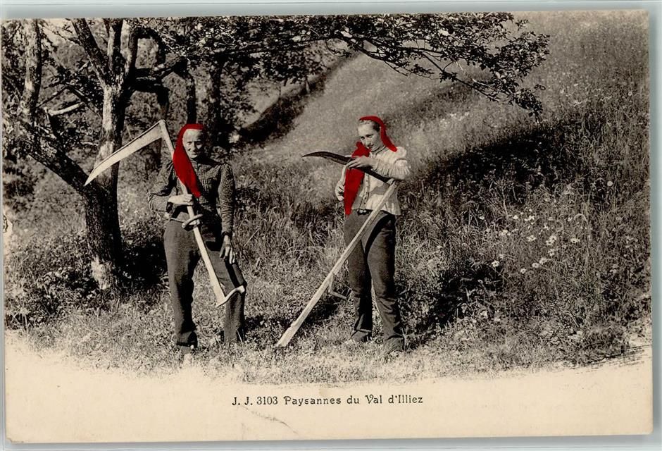 1873 Val-d'Illiez 1918 Gebrauchsspuren Bauern mit Sensen