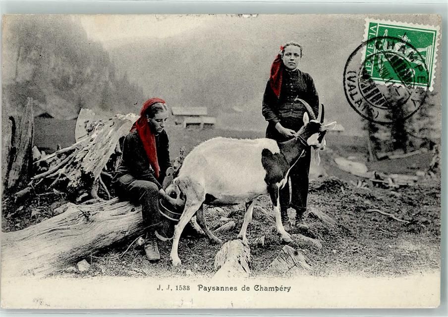 1874 Champéry 1911 - Bauernfrauen mit Ziege