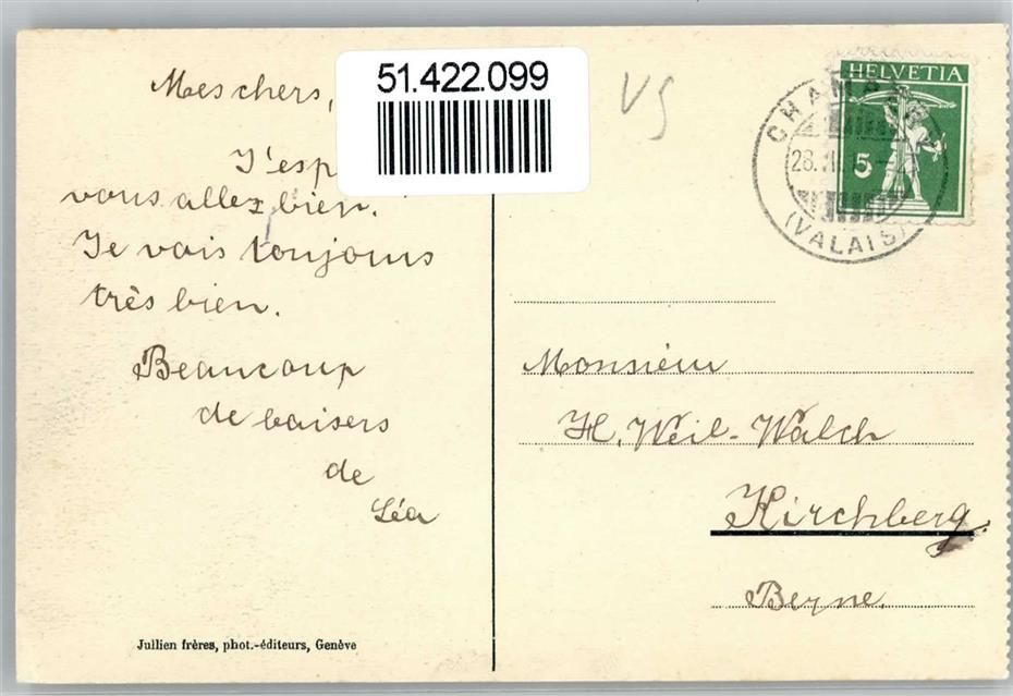 1874 Champéry 1915 - Eisenbahn Tunnel AKU2