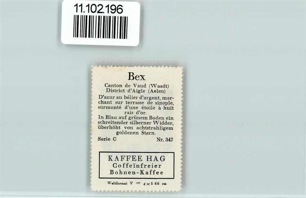 Bex, Vignette Wappen Kaffee Hag ca 1920-1940