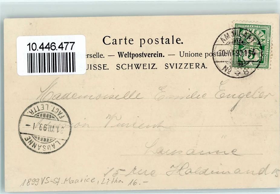 1890 St-Maurice 1899 Lithographie Brücke