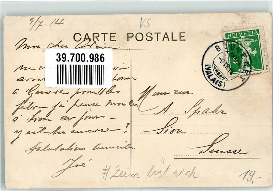 1897 Bouveret 1914 Gebrauchsspuren Hotel de la Foret Leim löst sich