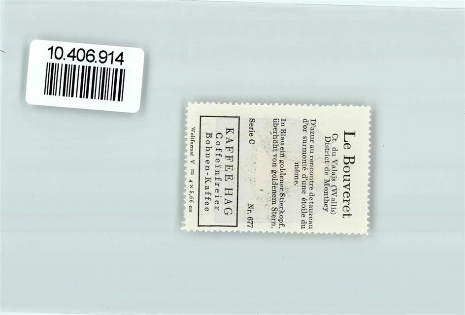 Bouveret, Vignette Wappen Kaffee Hag 1920-1940 Stierkopf