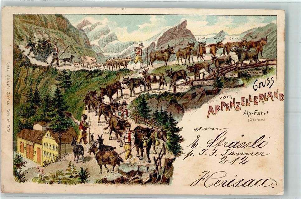1898 Gebrauchsspuren Alp Fahrt Appenzeller Land Lithographie Verlag Künzli 1473 AK