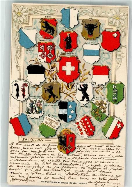 1901 Prägedruck Schweizer und kantonale Wappen