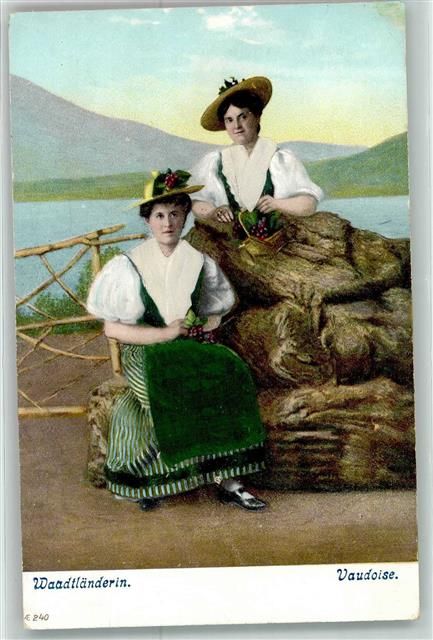 1906 - mit echter Stoff Applikation Vaudoise Frauen mit Weintrauben AK