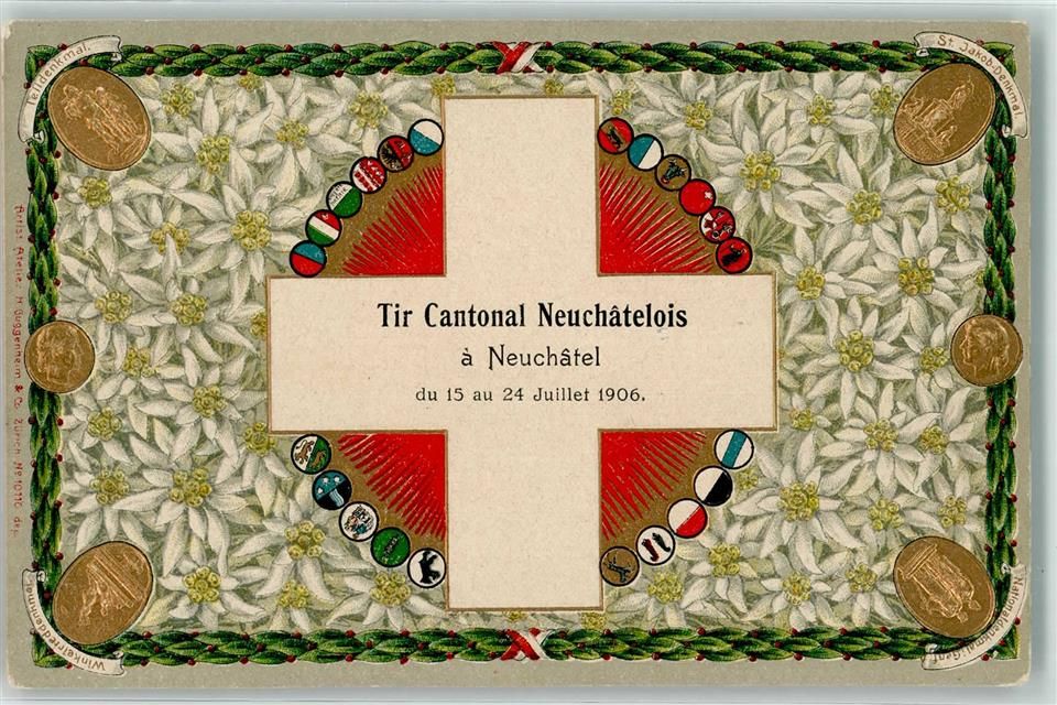 , Tir Cantonal Neuchatelois Wappen Denkmale Patriotik Schweiz
