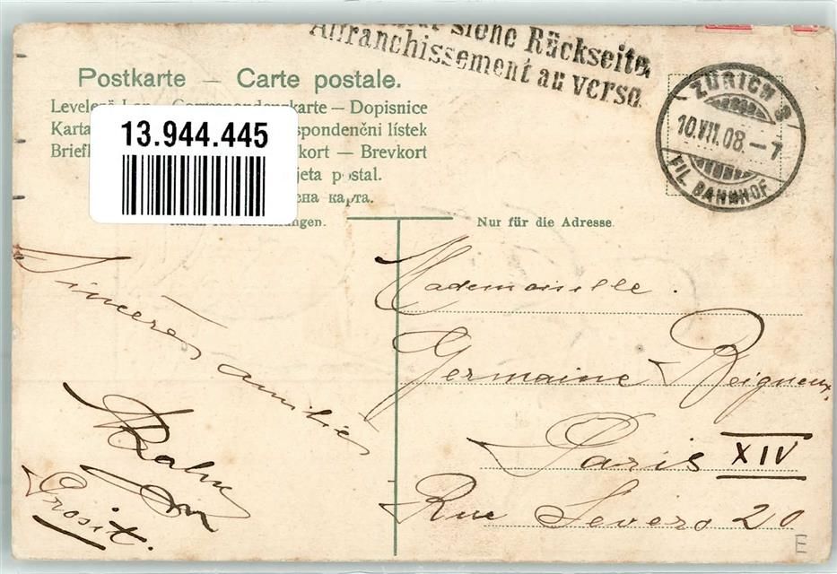 1908 Prägedruck Senner Junge mit Pfeife mit echter Stoff Applikation AK
