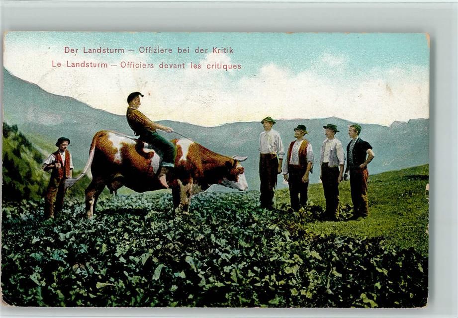 1909 - Bauer sitzt auf einer Kuh - Der Landsturm - Offiziere bei der Kritik - Humor