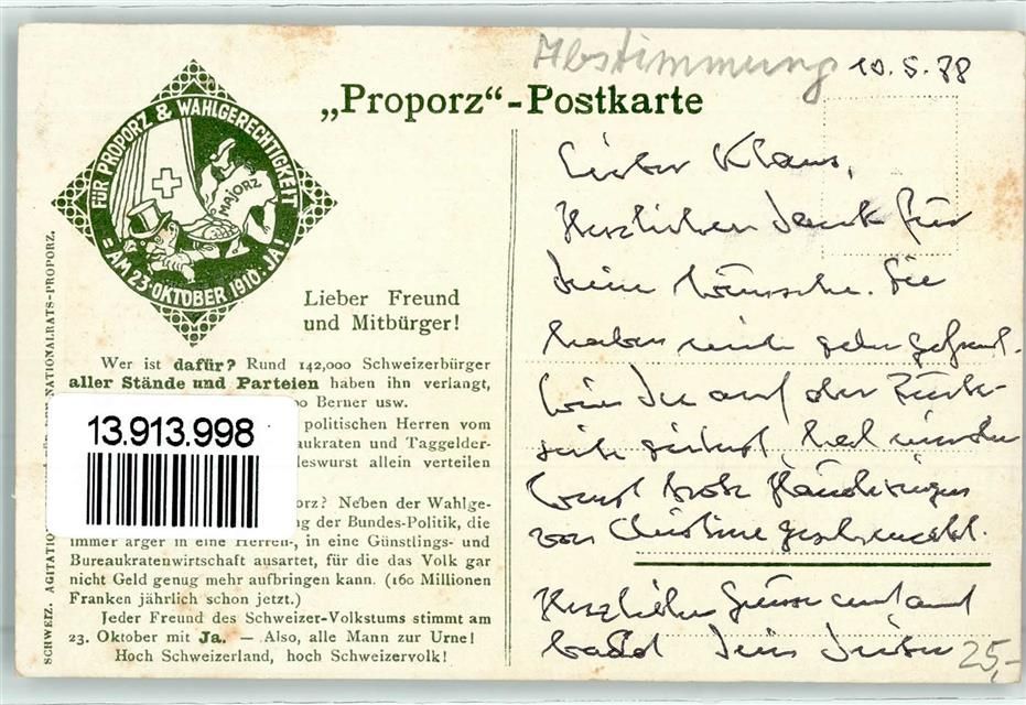 1910 - Majorz Proporz Wahlgerechtigkeit Abstimmung