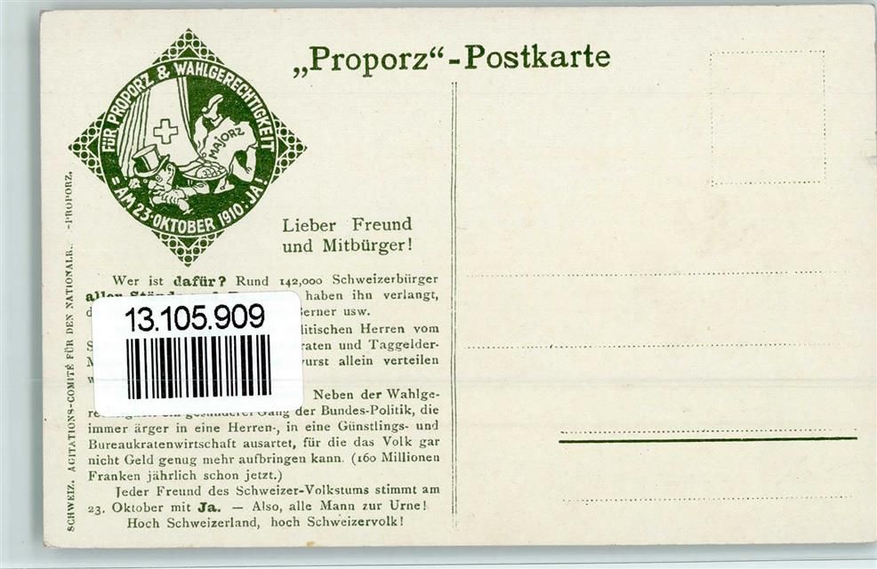 1910 - Proporz - Majorz - Volksabtimmung - AK