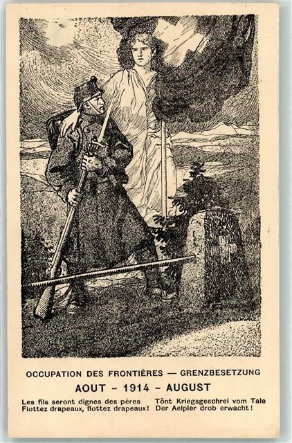 1914 Künstlerkarte Occupation des Frontieres Grenzbesetzung Soldat Uniform Gewehr sign. A. Schwaz