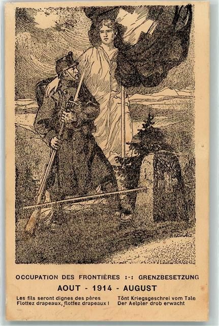 1914 Künstlerkarte Occupation des Frontieres Grenzbesetzung Soldat Uniform Gewehr sign. A. Schwaz