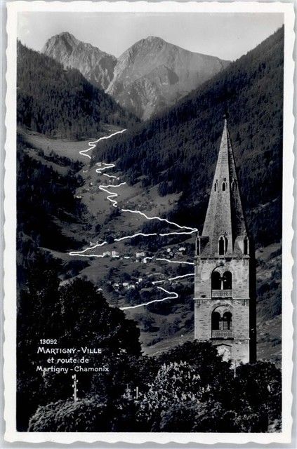 1920 Martigny - et route de Martigny Chamonix Kirchturm AKU2