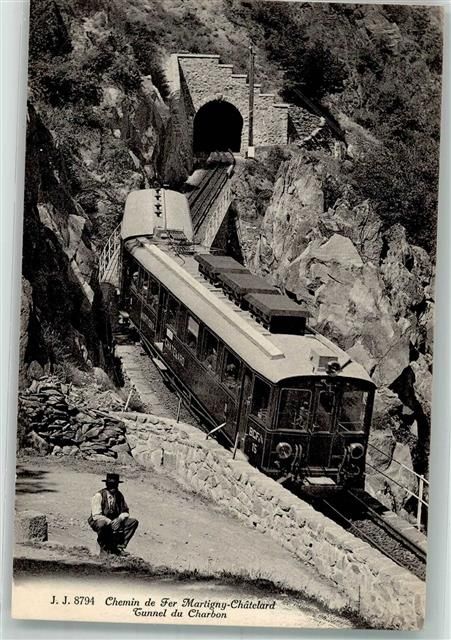 1920 Martigny Foto AK Bergbahn Tunnel du Charbon