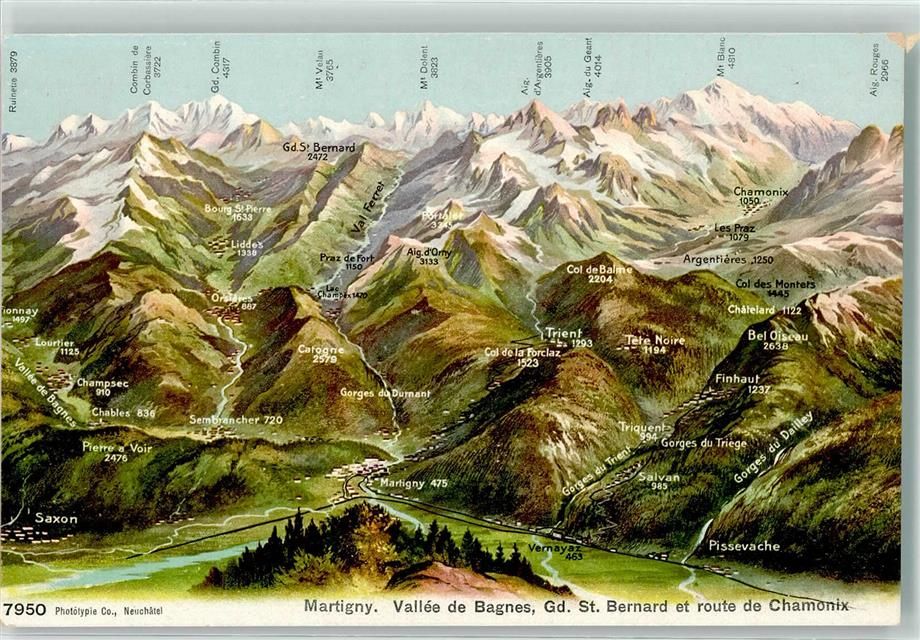 1920 Martigny - Vallee de Bagnes Grosser St. Bernhard Route nach Chamonix Vogelschau