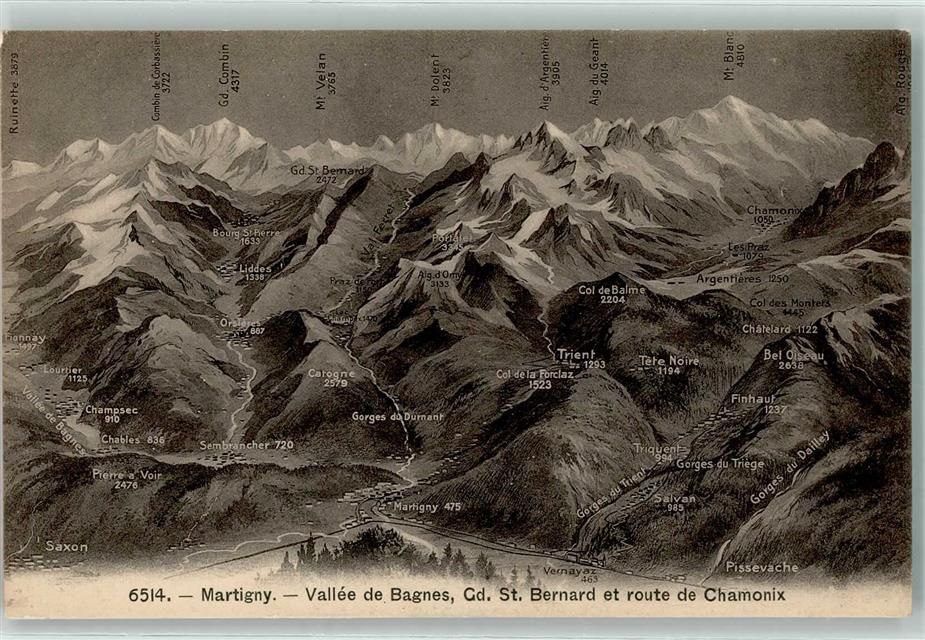 1920 Martigny - Vogelschau Vallee de Bagnes