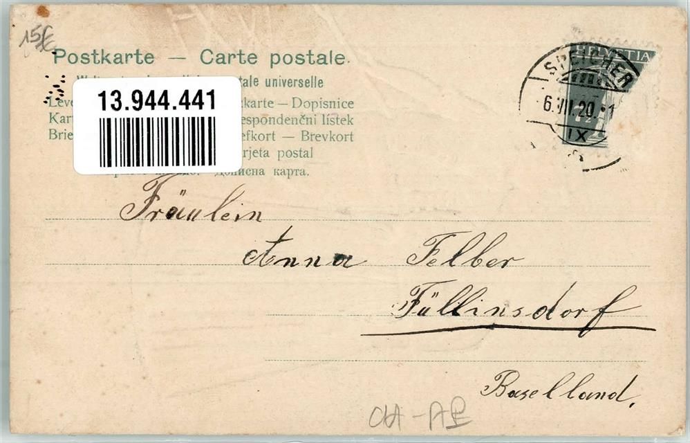 1920 Prägedruck Liebespaar mit echter Stoff Applikation AE 147