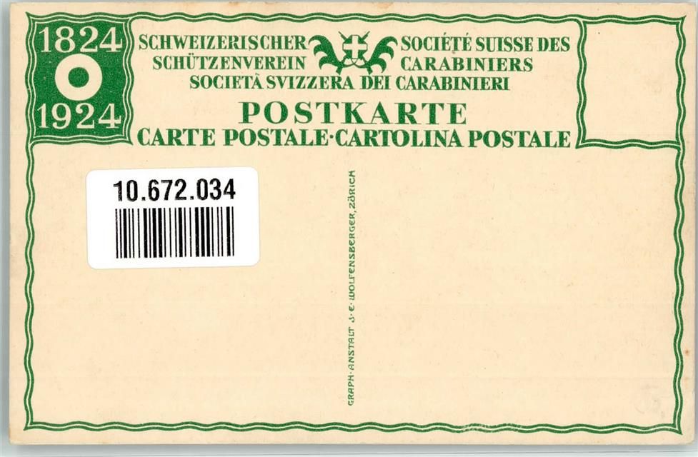 1924 Lithographie / Künstlerkarte Schützenverein Carabiniers Verlag Wolfensberger