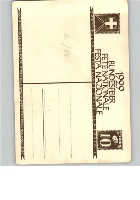 1929 , Jungen setzen eine Fahne Bundesfeier Ganzsachen Schweiz Künstlerkarte