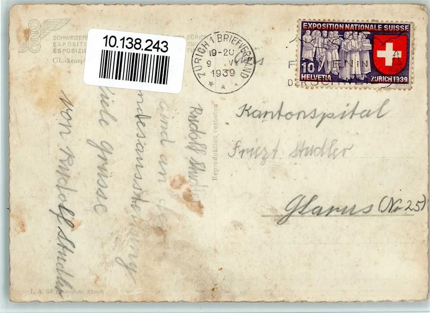 1939 Gebrauchsspuren LA 30 Photoglob, Glockenspiel - Landesausstellung