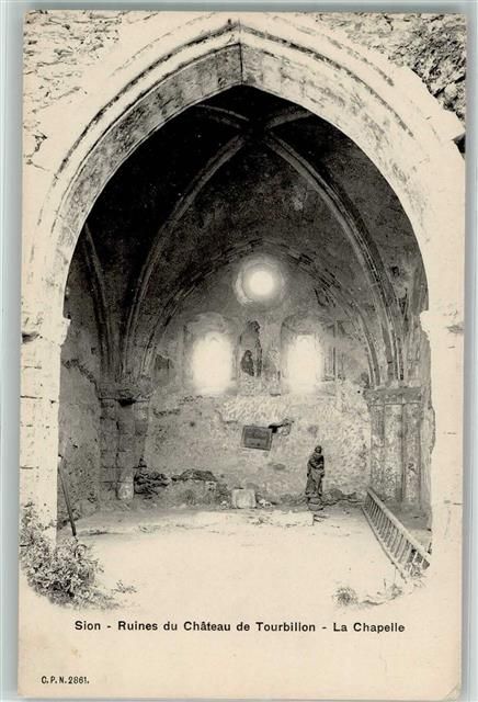 1950 Sion Sitten Gebrauchsspuren Ruines du Chateau de Tourbillon La Chapelle