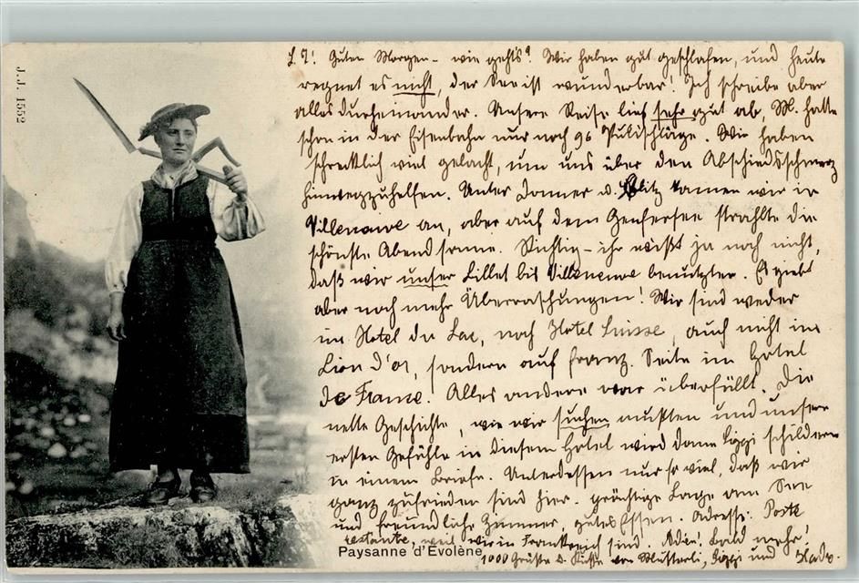 1983 Evolène 1903 Gebrauchsspuren Bauernfrau mit Sense