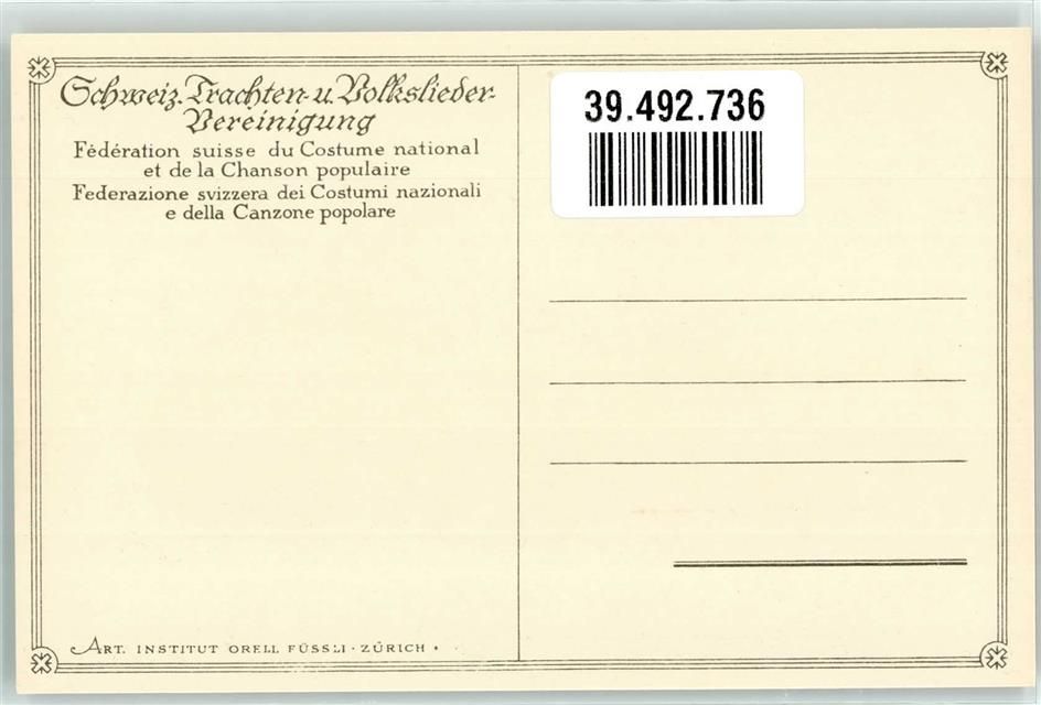 Evolène, sign. E. Bille Frau Schw. Trachten-und Volksliedervereinigung