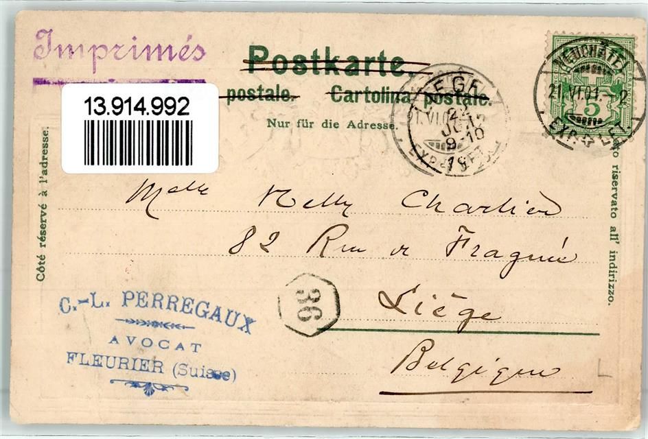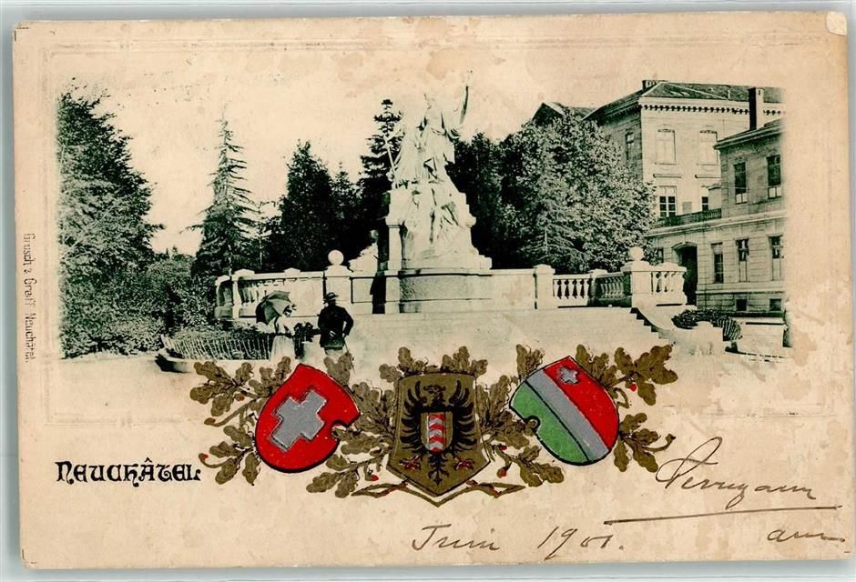 2000 Neuchâtel Neuenburg 1901 Prägedruck Monument de la Republique Wappen