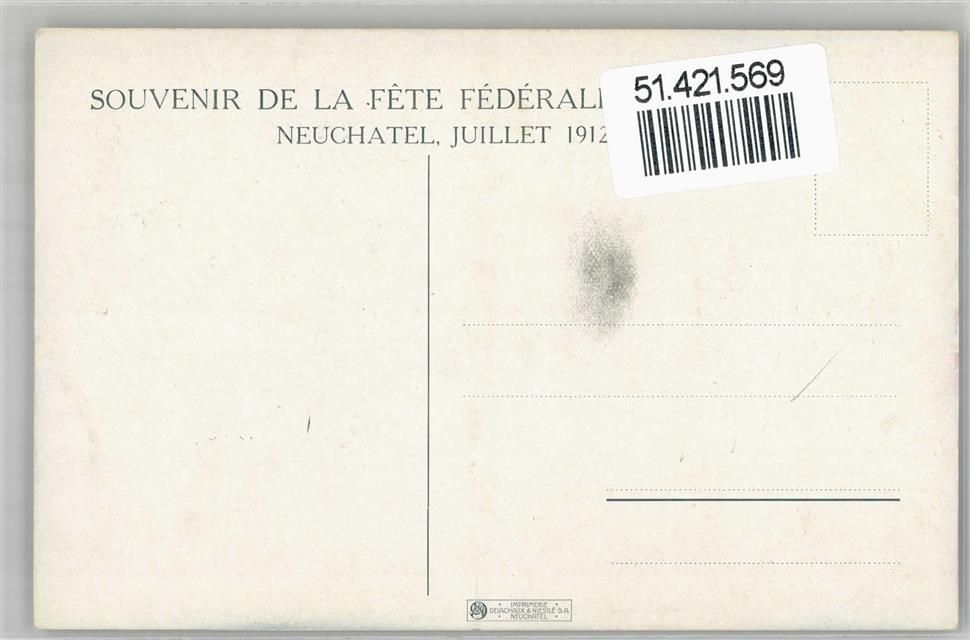 2000 Neuchâtel Neuenburg Künstlerkarte sign. F.J. Nofaier Tempel Fest 1912