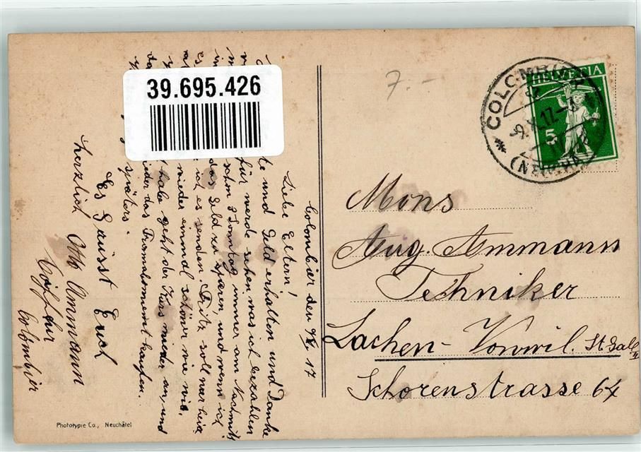 2012 Auvernier 1917 - Landkarte Neuenburgersee Murtersee