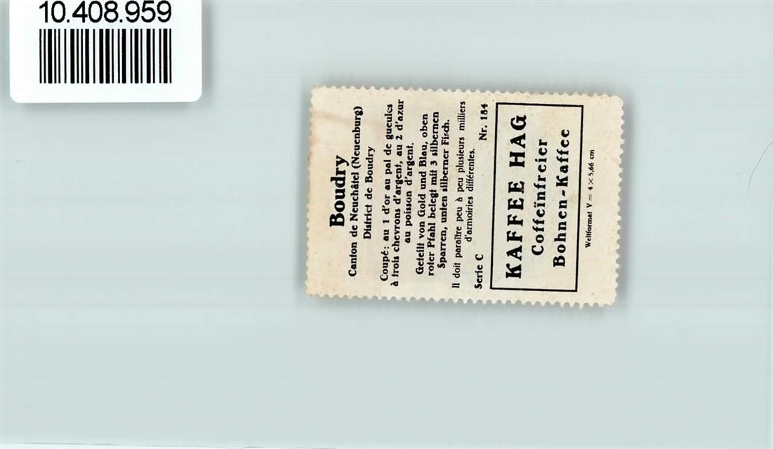 Boudry, Vignette Wappen Kaffee Hag ca 1920-1940 Fisch