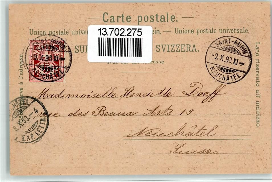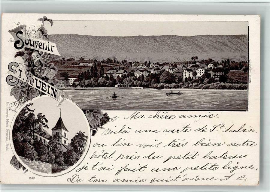 2024 St-Aubin-Sauges St-Aubin NE 1898 BOAKC Lithographie Kirche