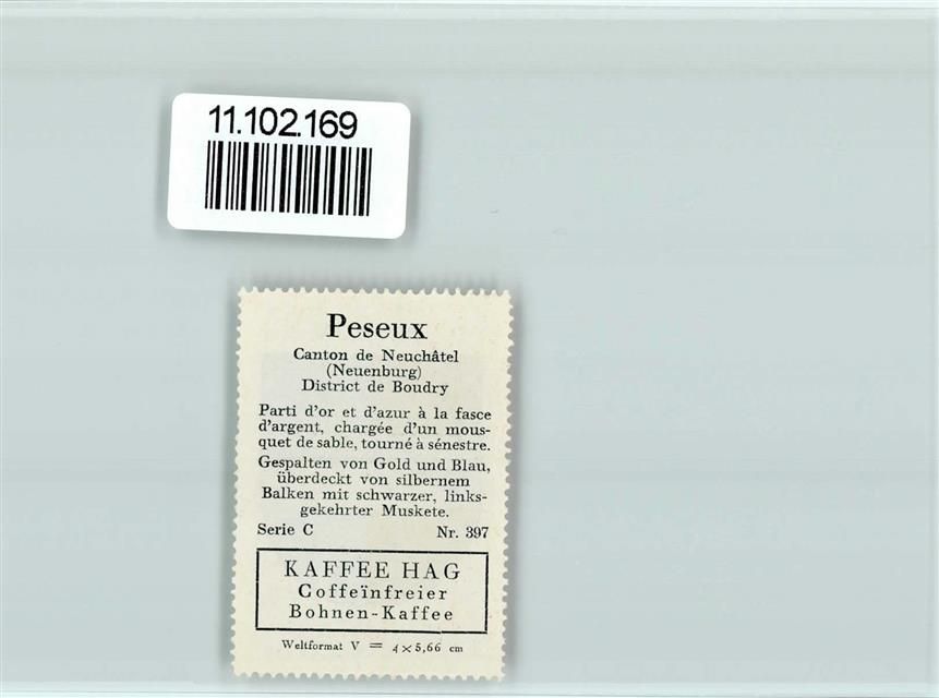 Peseux, Vignette Wappen Kaffee Hag ca 1920-1940