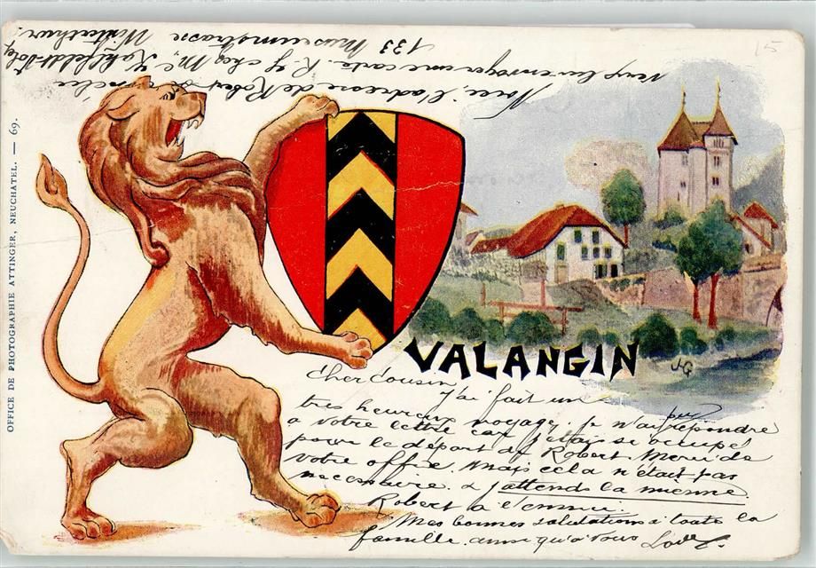 2042 Valangin 1900 Künstlerkarte Wappen Löwe