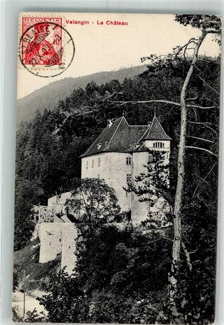 2042 Valangin 1909 Foto AK Schloss Briefmarke Bildseite