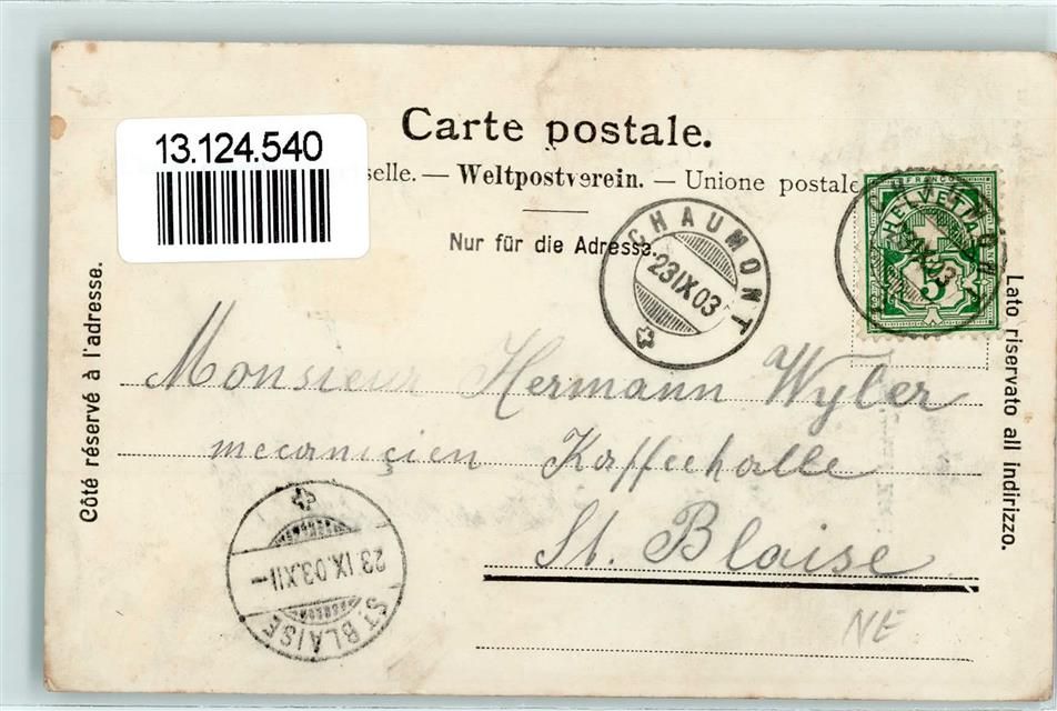 2067 Chaumont 1903 - Le grand Hotel Ital-schweiz. Fahne